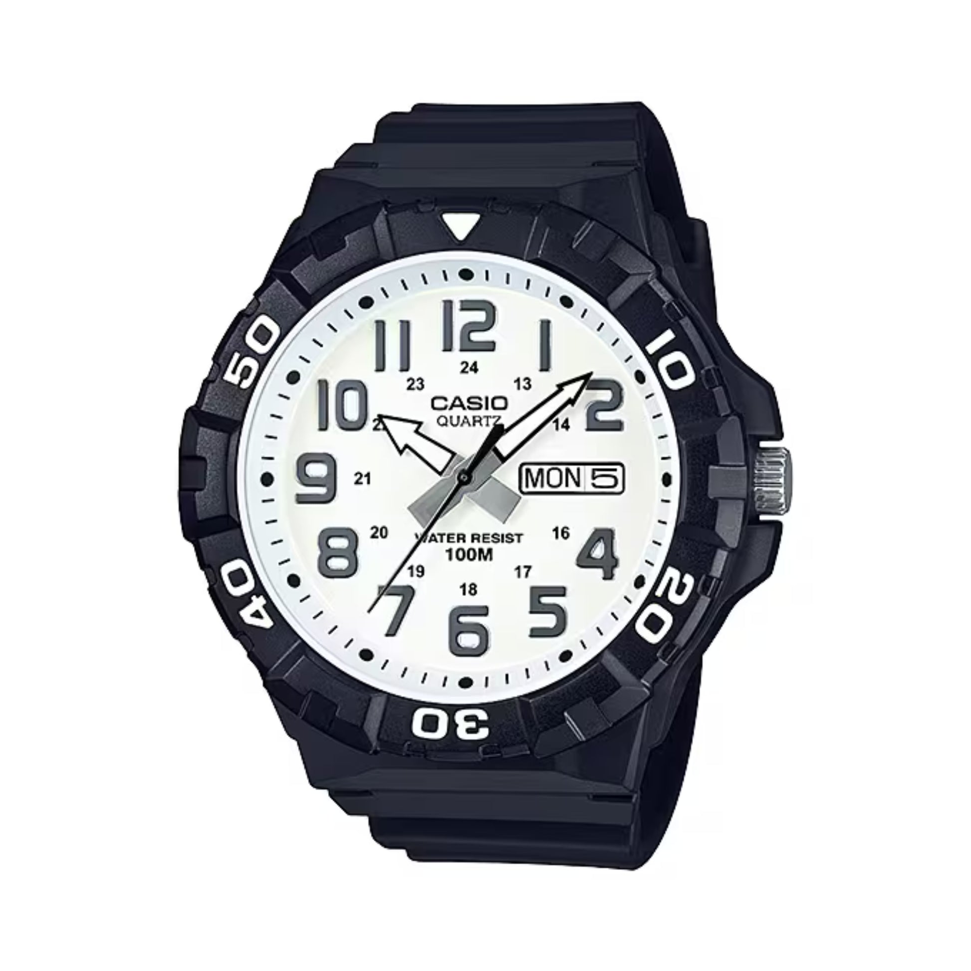 Incorpora marco tipo temporizador y pantalla de día y fecha para mayor practicidad. Su construcción en resina lo mantiene liviano pese a su tamaño, mientras que su resistencia al agua de 100 metros permite usarlo en piscina y actividades recreativas sin preocupaciones.